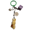 1 keychain - vintage reworked (hand drilled) flocked animal charm, green o-ring clasp, drop chain w/ silver plastic beads, white pearly plastic bead, cream colored button, deadstock "cute" bear cube